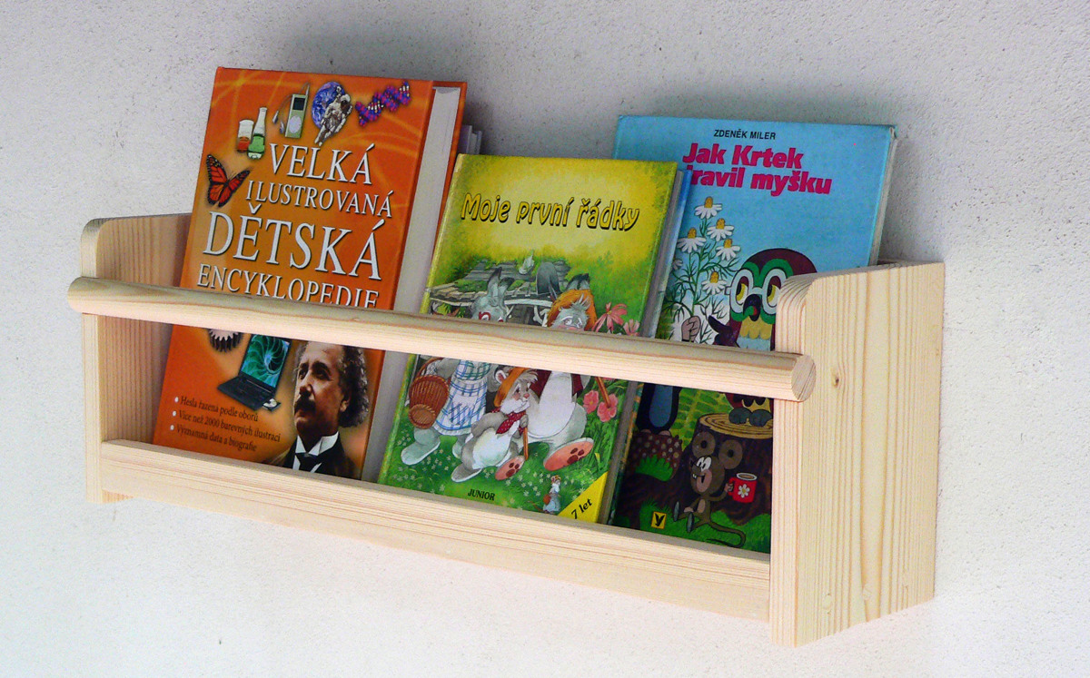 Máte problém s přehledným uložením dětských různoformátových knížek, leporel, omalovánek a pod.? Tato polička Vám pomůže. Je vyrobena prvotřídního smrkového masivu.