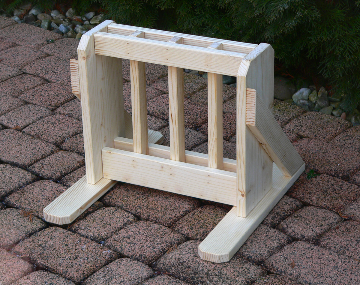 Praktický, skladný, volně stojící, přenosný dřevěný stojan na 4 páry běžeckých lyží s patkami širokými až 6 cm vyrobený ze smrkového masivu. Stojan je stabilní, bez nutnosti fixace k podlaze. Stojan je vhodný pro použití na chatách, chalupách, ski půjčovnách, atd. Vzhledem k malým rozměrům není problém jej umístnit v garáži, předsíni, terase, balkoně apod. Stojan má odtokové otvory pro tající sníh.