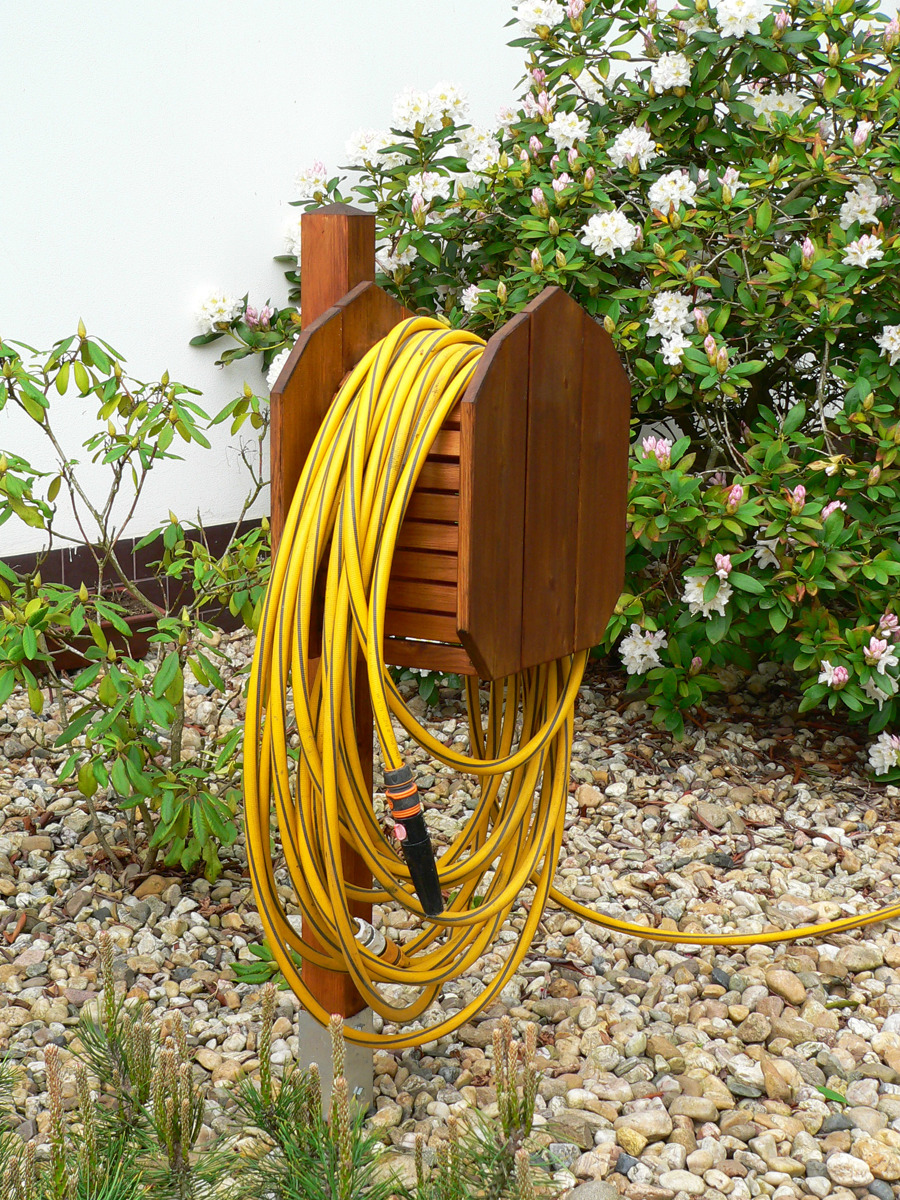 Praktický dřevěný držák na hadice je vyrobený z masivu sibiřského modřínu a smrku(noha). Sibiřský modřín nelze srovnávat s modřínem evropským. Název je stejný ale vlastnost se liší. Kvalita sibiřského modřínu převyšuje téměř ve vśech ohledech kvalitu dubu(mrazuvzdornost, odolnost vůči vodě, biologickou odolnost, životnost). Sibiřský modřín je tvrdé, poměrně pružné a velmi trvanlivé dřevo. Díky vysoké hustotě, velkému obsahu pryskyřice a specifickému složení dehtů se sibiřský modřín nachází nejenom na prvním místě v odolnosti vůči zahnívání. V porovnání s dubem, jasanem nebo borovicí je dvojnásobně rezistentní.