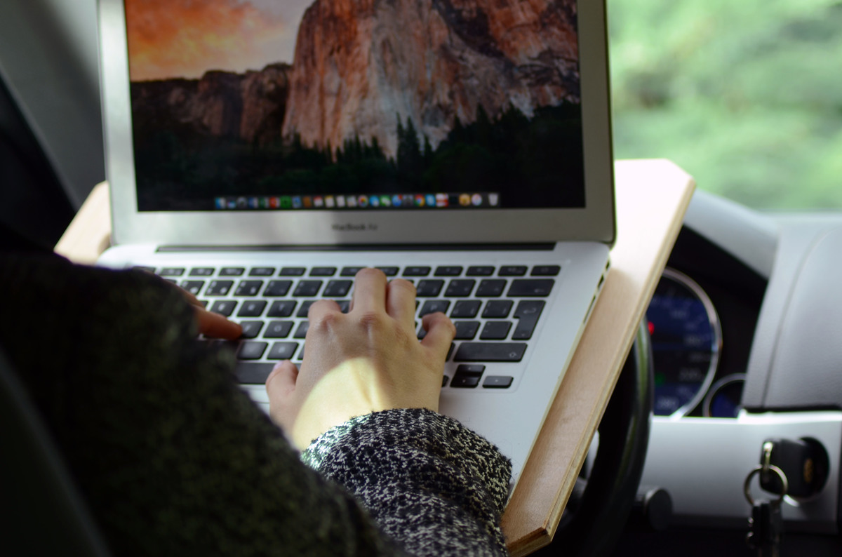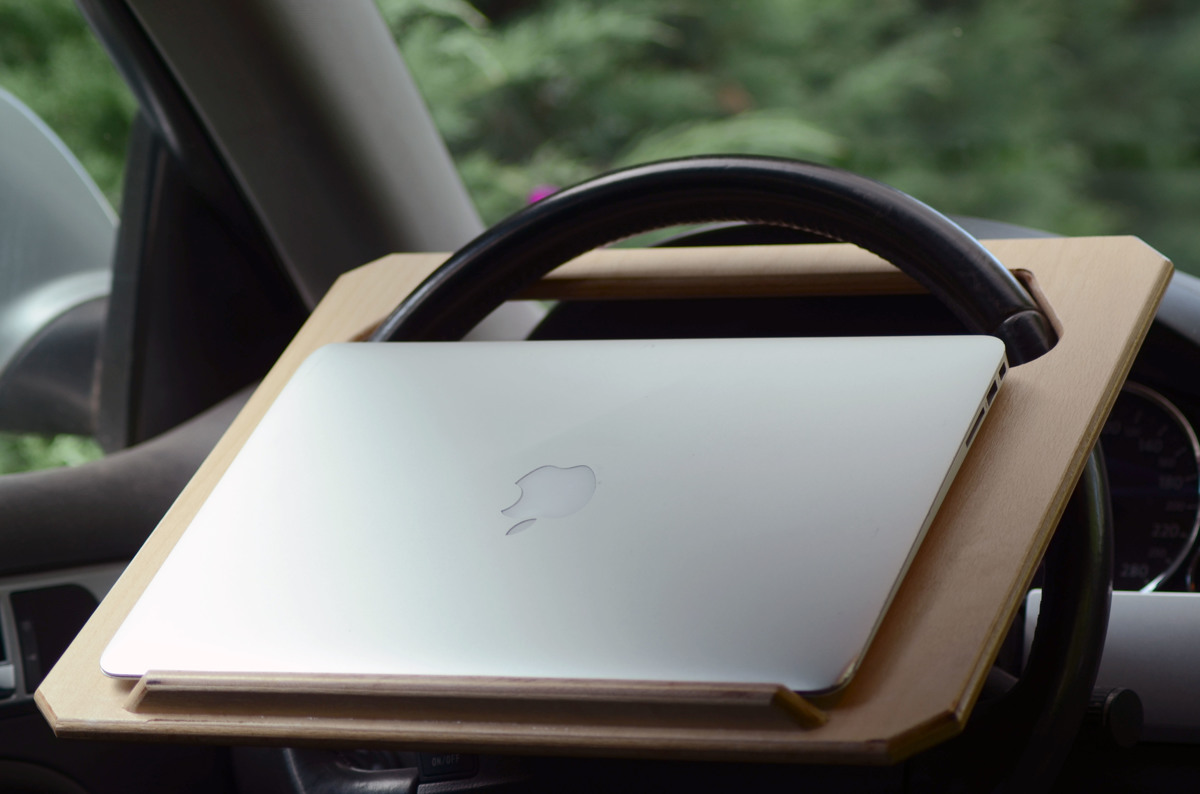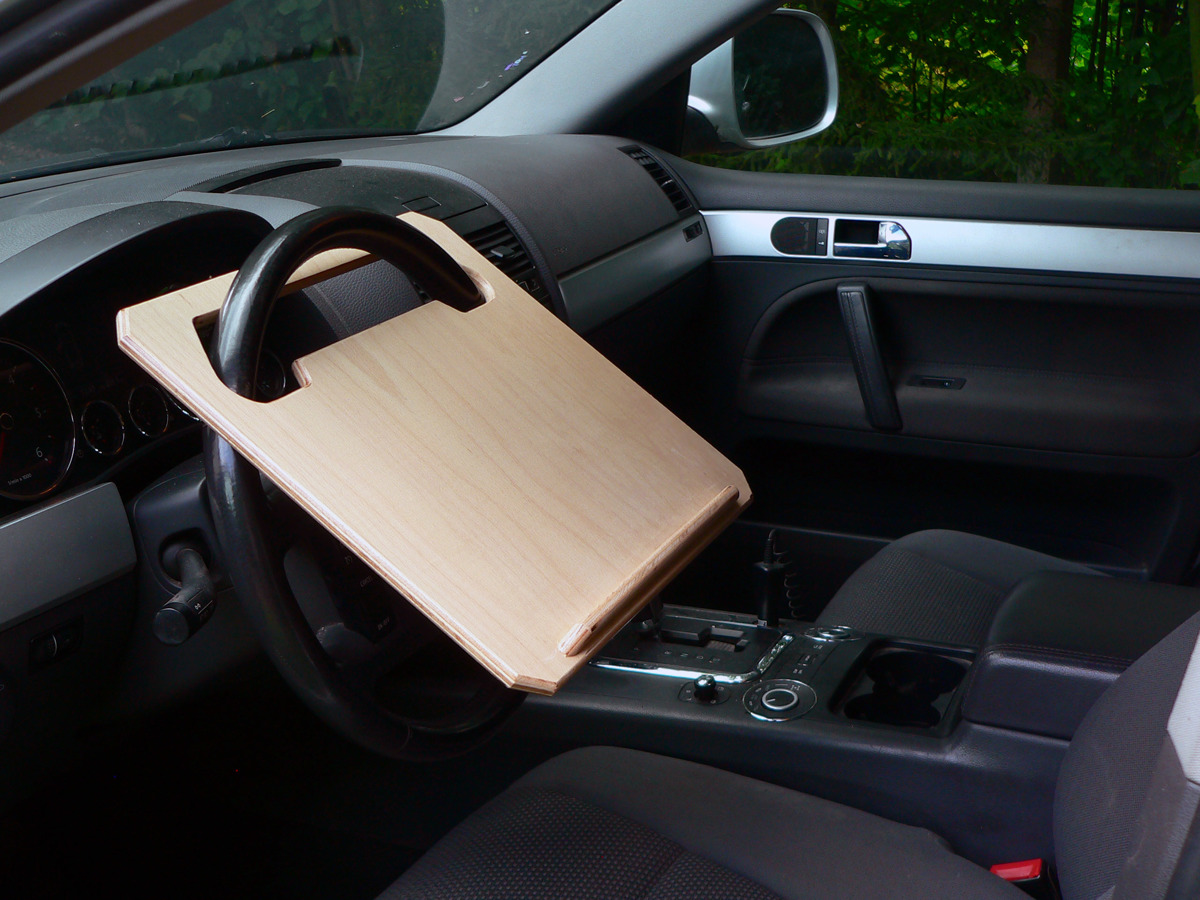 Praktický držák notebooku anebo tabletu do auta umožňuje pohodlnou práci s laptopem i na cestách. Držák se jednoduše nasadí na volant, ideální polohu lze ještě dostavit výškovým nastavením volantu. Vhodné pro notebooky až do velikosti 15".