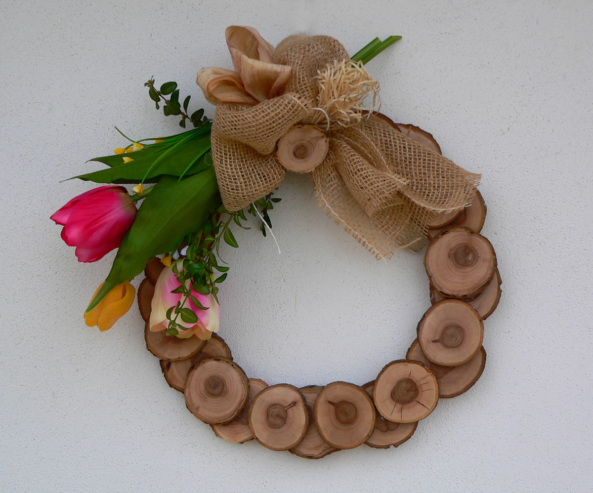Přírodně nazdobený podzimní věnec s průměrem 35 cm.
