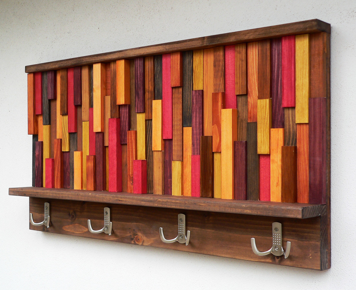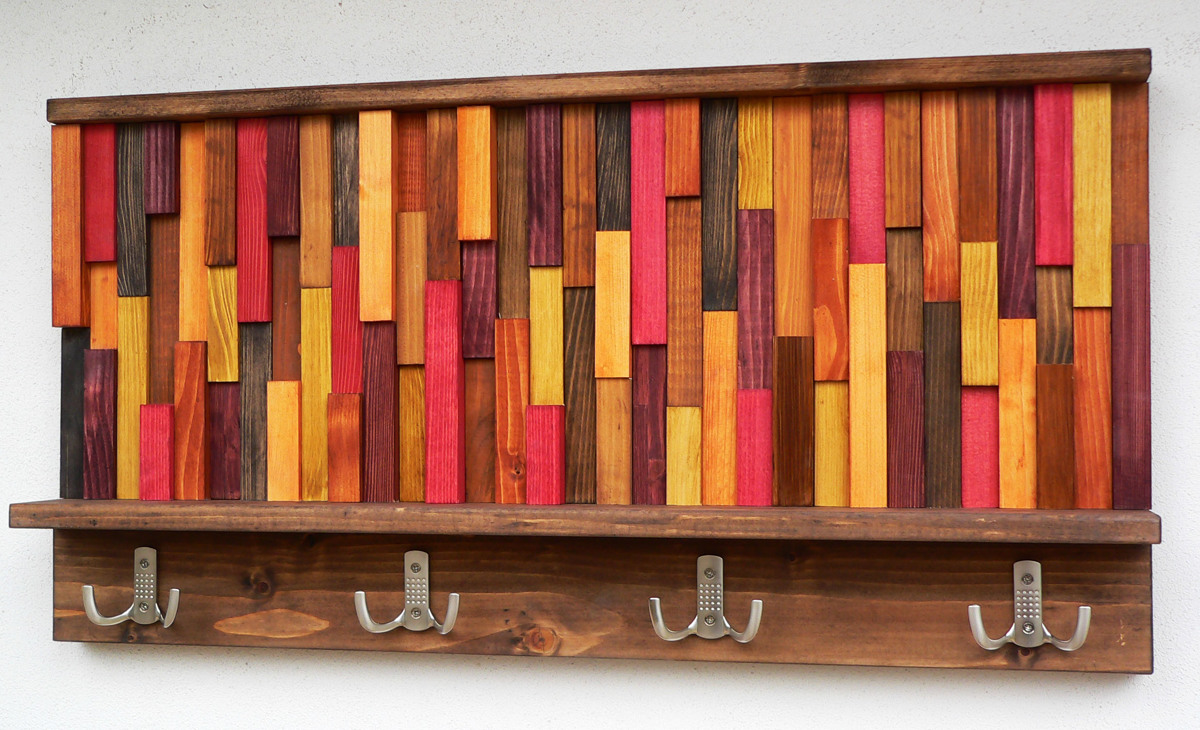 Moderní designový věšák VERTI s odkládací poličkou je zhotovený z masivu sibiřského modřínu a smrku s kováním Hettich. Jedná se o zakázkovou výrobu, každý kus je originál.
