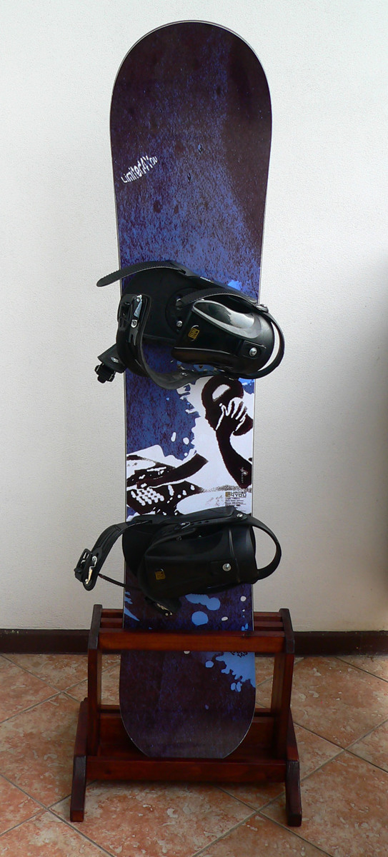 Praktický, skladný, volně stojící, přenosný dřevěný stojan na 2 snowboardy s patkami širokými až 14"(35,6 cm )vyrobený ze smrkového masivu. Stojan je stabilní, bez nutnosti fixace k podlaze. Stojan je vhodný pro použití na chatách, chalupách, ski půjčovnách, atd. Vzhledem k malým rozměrům není problém jej umístnit v garáži, předsíni, terase, balkoně apod. Stojan má odtokové otvory pro tající sníh.