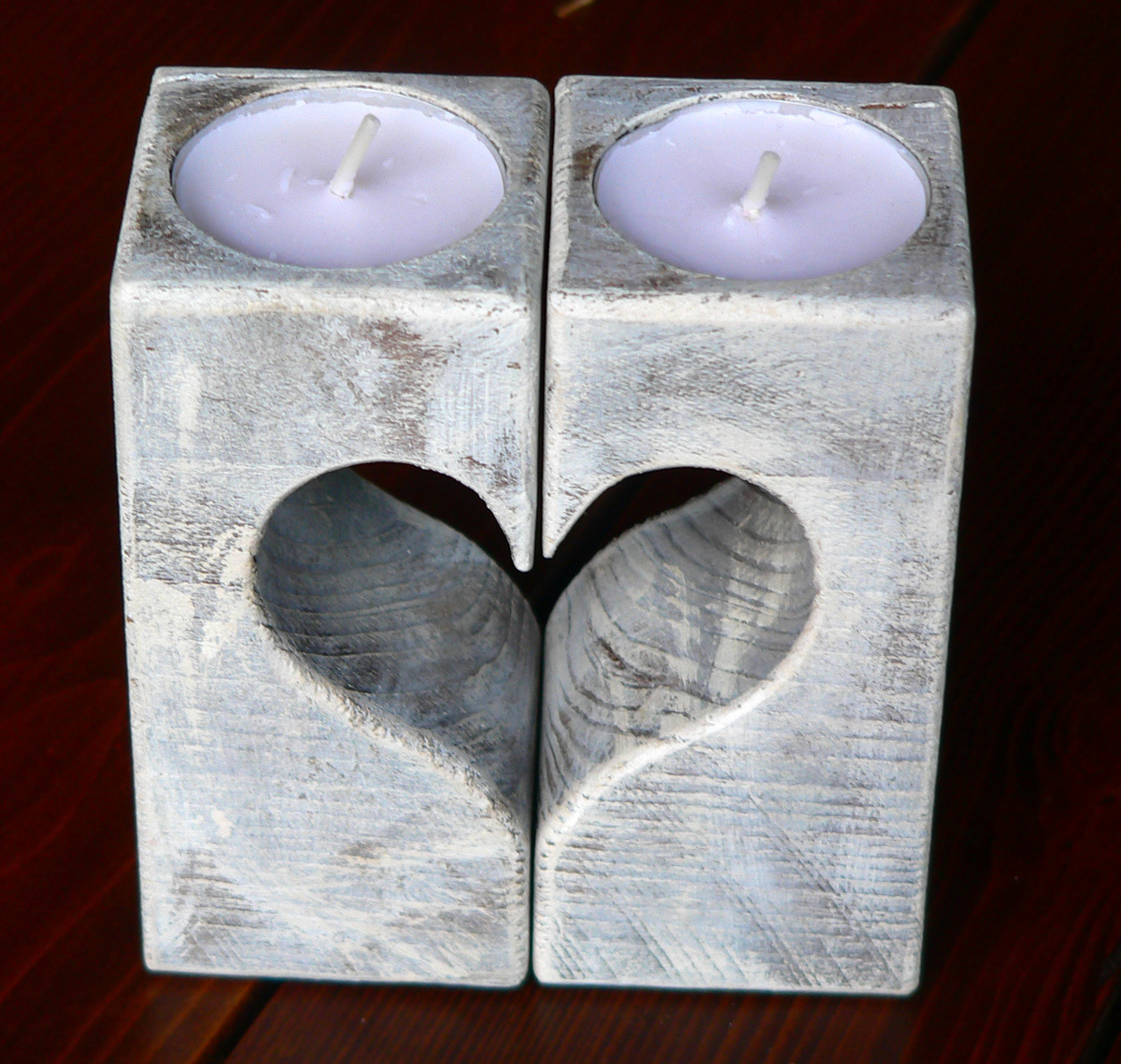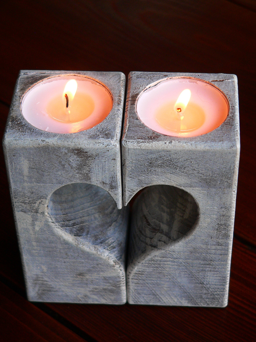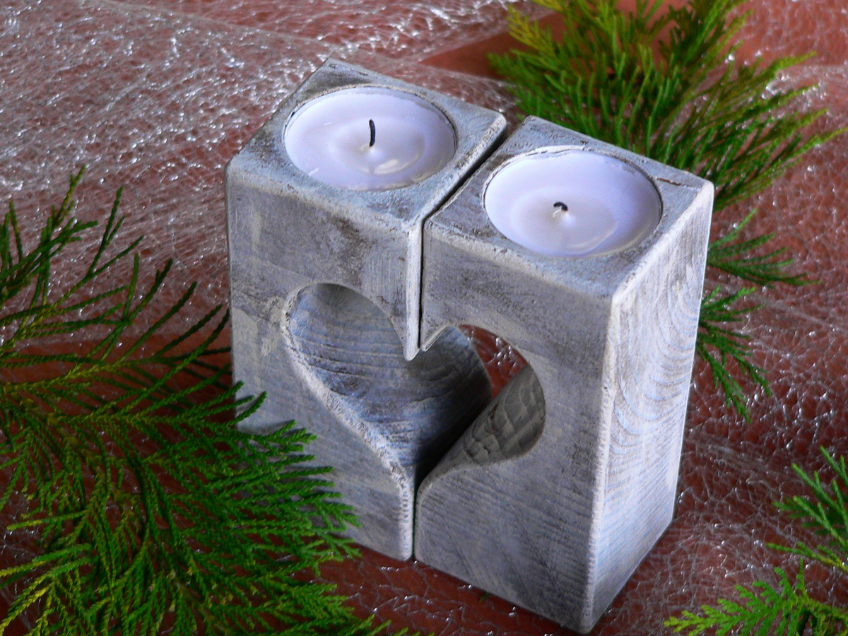 Stylový dřevěný svícen ve vintage stylu na čajové svíčky.